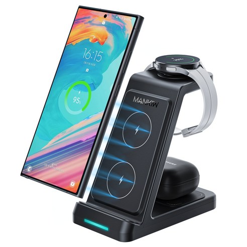 Mankiw맨큐 3in1 무선충전기 갤럭시워치 버즈 호환 고속충전 거치대 - 충전기 | 쿠팡